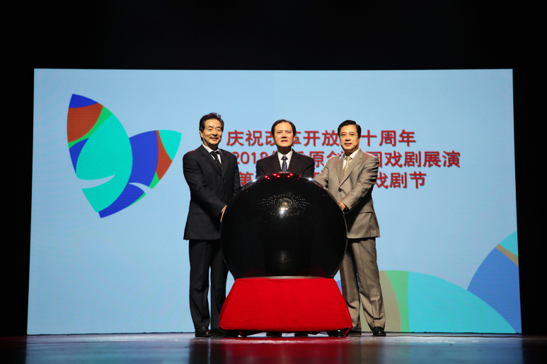 中国文联党组成员、副主席李前光,中国文联副主席、中国剧协顾问董伟,中国文联副主席、中国剧协主席濮存昕共同启动开幕式