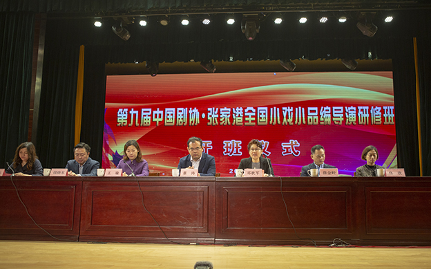 4月16日上午,第九届中国剧协·张家港全国小戏小品编导演研修班在张家港市星海剧场开班。中国文联戏剧艺术中心主任邓秋军、中国文联理论研究室副主任董涛、中国文联戏剧艺术中心志愿服务处处长薛金岭、中国文联戏剧艺术中心教育培训处负责人佟欣,张家港市副市长王瑜,市委宣传部副部长、市文联主席钱晓东,市文体广旅局副局长李忠影等出席开班仪式。
