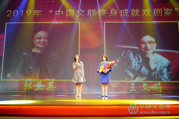 开幕式上举行了2019年“中国文联终身成就戏剧家”表彰仪式。“中国文联终身成就戏剧家”是中国文联、中国剧协为表彰、奖励在戏剧艺术上取得突出成就、德艺双馨,长期以来为中国戏剧事业繁荣发展作出杰出贡献,具有良好的社会影响力、代表性和示范性的75周岁以上的老艺术家而设立的最高荣誉。本届评选经戏剧界专家提名,广泛征求意见,经中国剧协第八届主席团第五次会议审议通过,报中国文联批准,歌剧表演艺术家郭兰英、越剧表演艺术家王文娟获评。