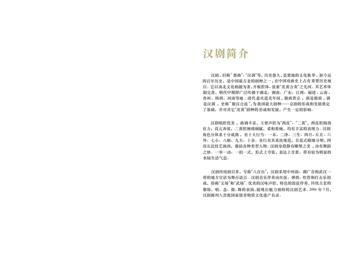 近400年历史的汉剧,在中国戏曲发展史上具有重要地位,它是以南北文化相融,开“皮黄合奏”之先河,为京剧的形成和发展奠定了基础,对川剧、滇剧、桂剧、湘剧、粤剧、赣剧等地方戏曲剧种的发展也有不同程度的影响。武汉作为汉剧的发祥地,拥有深厚的文化积淀和历史底蕴,涌现出了一大批优秀的经典剧目和汉剧名家。