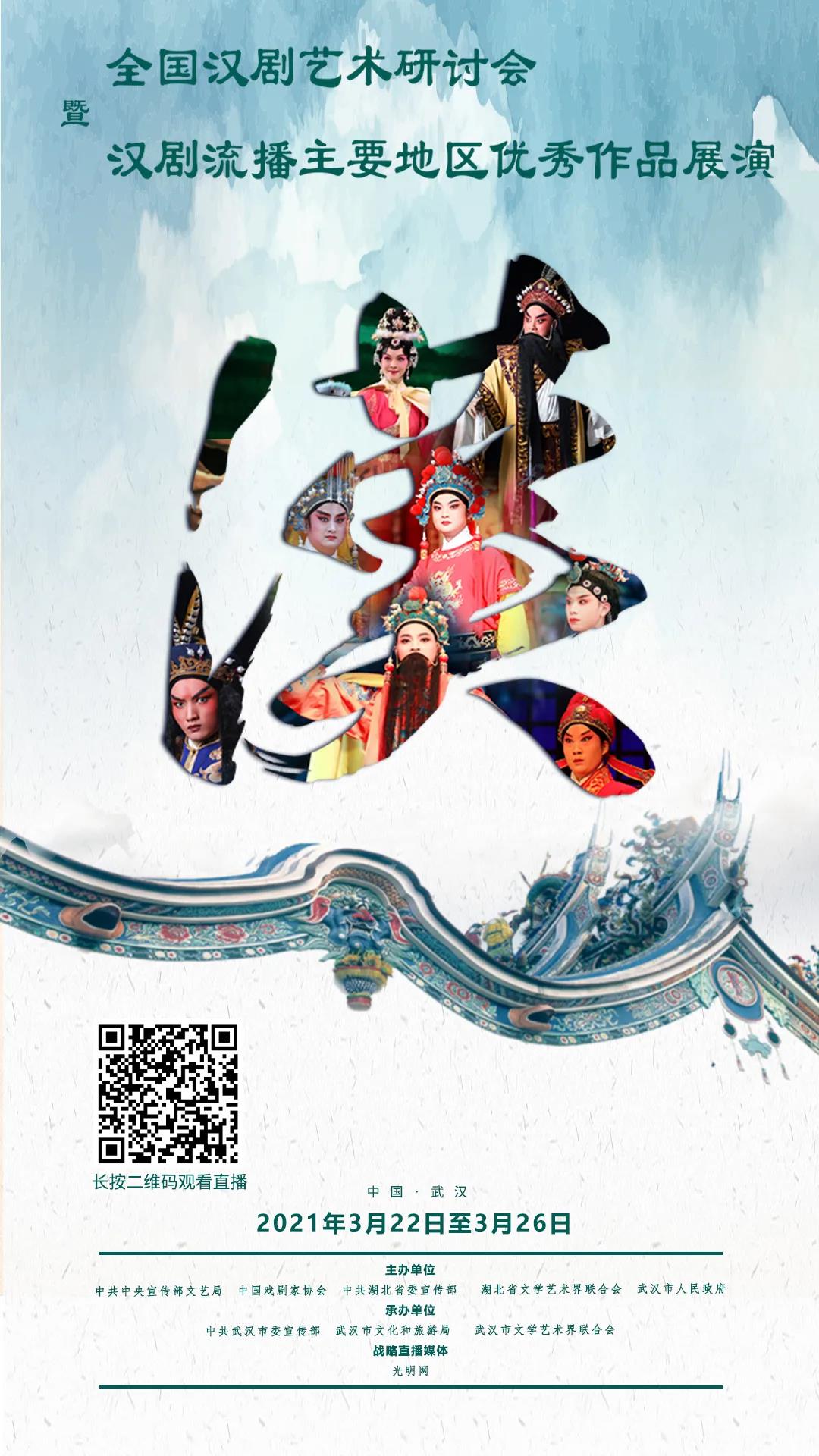 为深入学习贯彻习近平新时代中国特色社会主义思想和党的十九大精神,自觉承担起举旗帜、聚民心、育新人、兴文化、展形象的使命任务,弘扬中华优秀传统文化和中华美学精神,实现中华优秀传统文化创造性转化、创新性发展,推动汉剧创作,振兴汉剧艺术繁荣发展,由中共中央宣传部文艺局、中国戏剧家协会、中共湖北省委宣传部、湖北省文学艺术界联合会、武汉市人民政府主办,中共武汉市委宣传部、武汉市文化和旅游局、武汉市文学艺术界联合会承办的“全国汉剧艺术研讨会暨汉剧流播主要地区优秀作品展演”将于3月22日至26日在武汉举办。