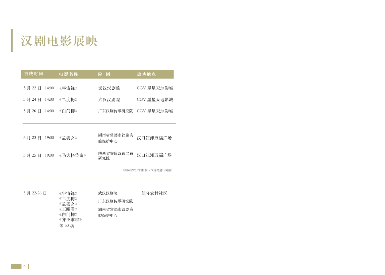 此次活动将汇聚国内专家学者,就汉剧艺术传承发展为题举办专题研讨会,并携手湖北、广东、福建、湖南、陕西等地的6家汉剧院团,推出6部优秀剧目和1台汉剧名家名段演唱会。此次展演坚持公益惠民原则,以线下剧场演出和线上网络直播相结合的形式开展,在光明网、中国文艺网平台同步播出,敬请期待。
